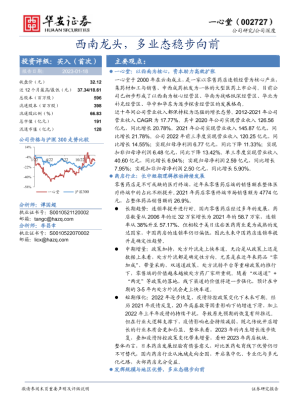 一心堂 医药零售 处方外流 西南市场 连锁药店