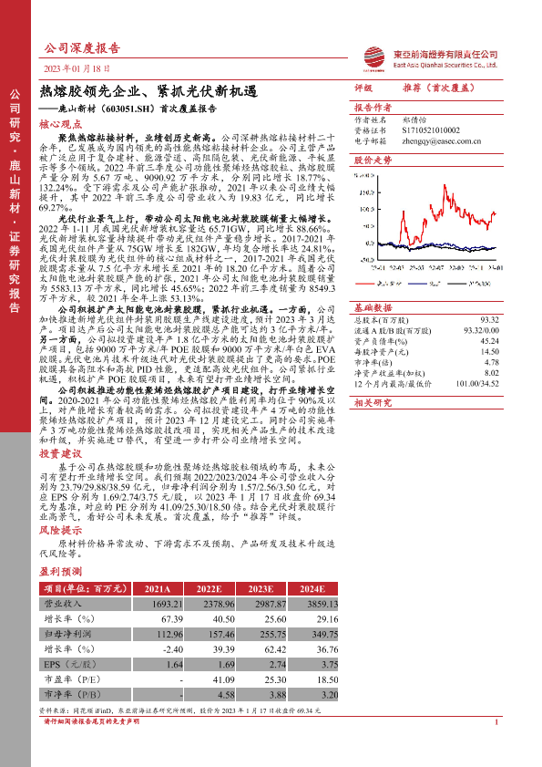 【东亚前海证券】【20230118】鹿山新材(603051.SH)首次覆盖报告:热熔胶领先企业、紧抓光伏新机遇-25页