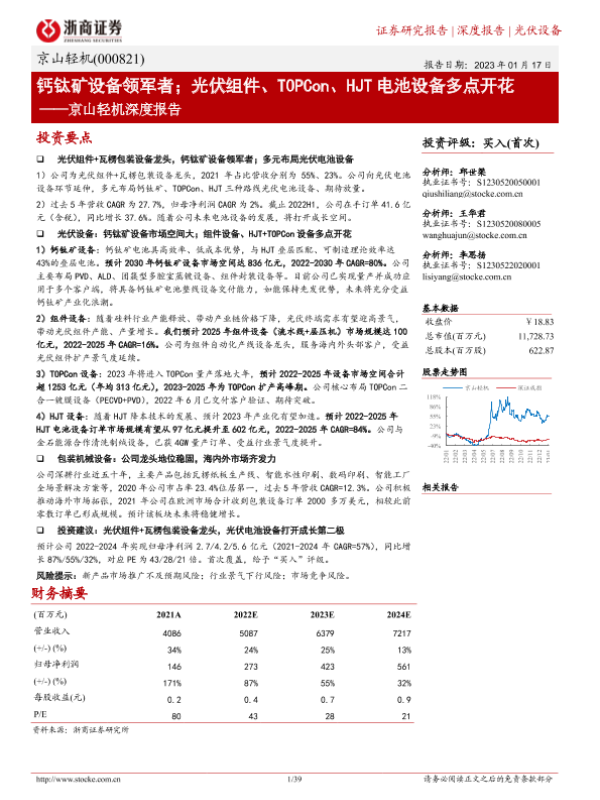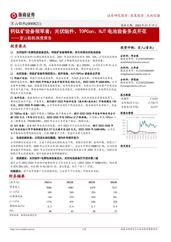 【浙商证券】【20230117】京山轻机深度报告:钙钛矿设备领军者;光伏组件、TOPCon、HJT电池设备多点开花-39页