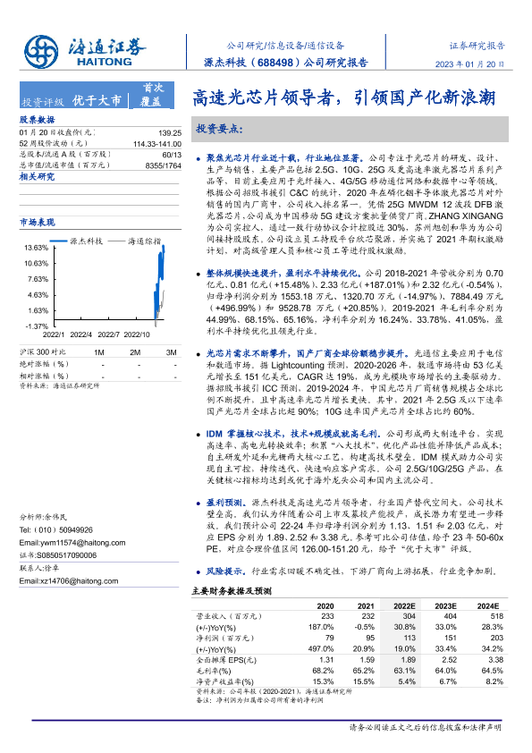 【海通证券】【20230120】源杰科技-高速光芯片领导者,引领国产化新浪潮-52页