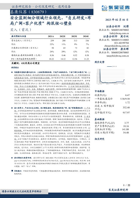 【东吴证券】【20230201】安全监测细分领域行业领先,“自主研发+布局广阔+客户优质”构筑核心壁垒-22页