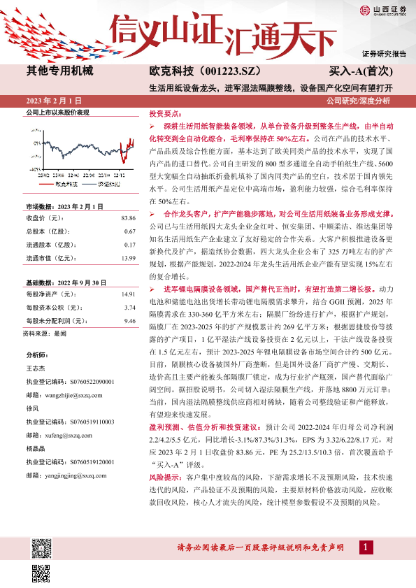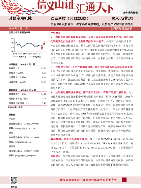 【山西证券】【20230201】欧克科技-001223.SZ-生活用纸设备龙头,进军湿法隔膜整线,设备国产化空间有望打开-33页