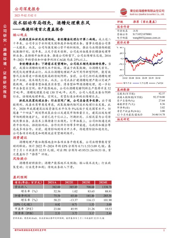 【东亚前海证券】【20230202】路德环境首次覆盖报告:技术驱动布局领先,酒糟处理乘东风-25页