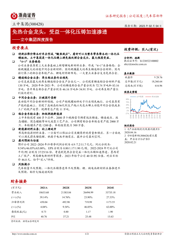 【浙商证券】【20230204】立中集团深度报告:免热合金龙头,受益一体化压铸加速渗透-21页