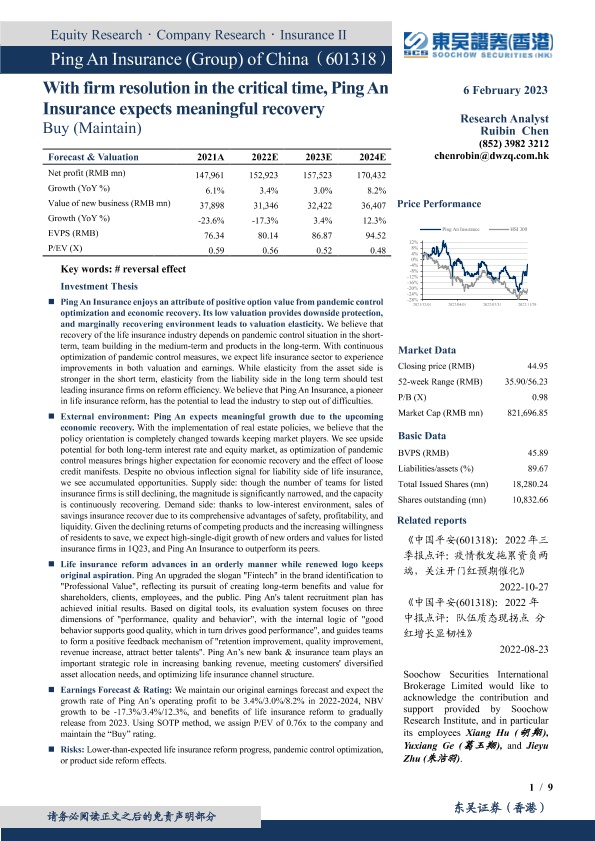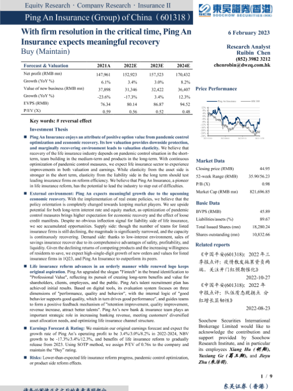 中国平安 寿险改革 疫情控制 经济复苏 资产估值