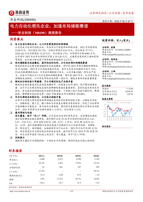【浙商证券】【20230207】20230207-浙商证券-华自科技-300490.SZ-深度报告:电力自动化领先企业,加速布局储能赛道-33页