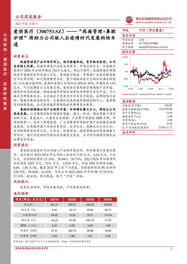 【东亚前海证券】【20230208】爱朋医疗(300753.SZ)——“疼痛管理+鼻腔护理”将助力公司驶入后疫情时代发展的快车道-34页