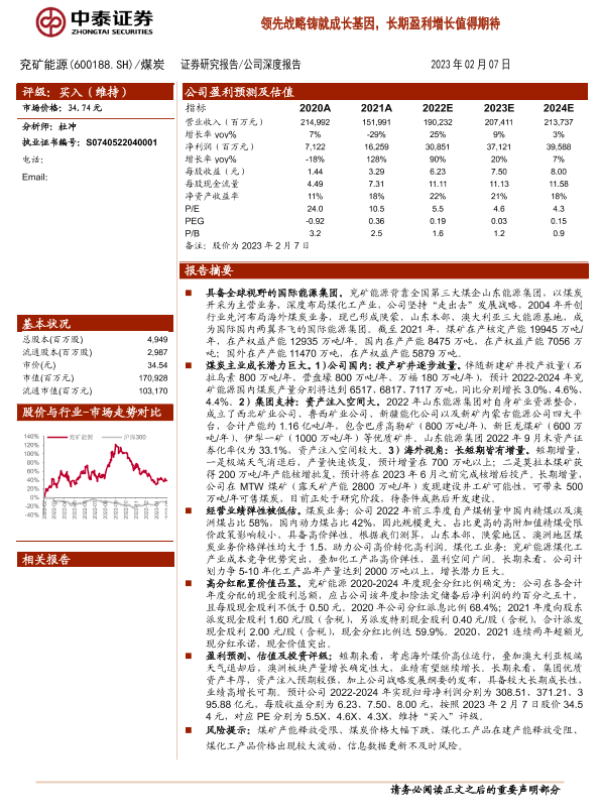 【中泰证券】【20230207】中泰证券-兖矿能源-领先战略铸就成长基因,长期盈利增长值得期待-31页