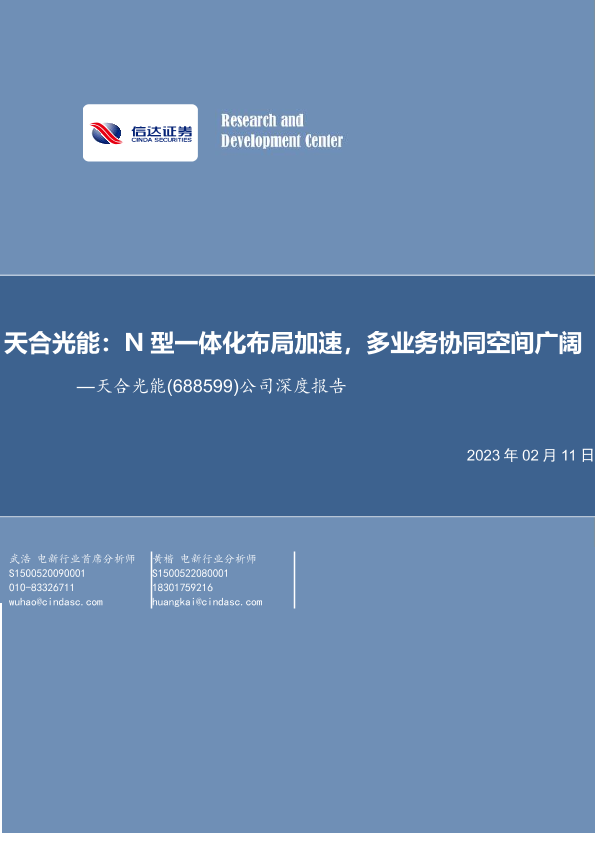 【信达证券】【20230211】天合光能-688599.SH-公司深度报告:N型一体化布局加速,多业务协同空间广阔-40页