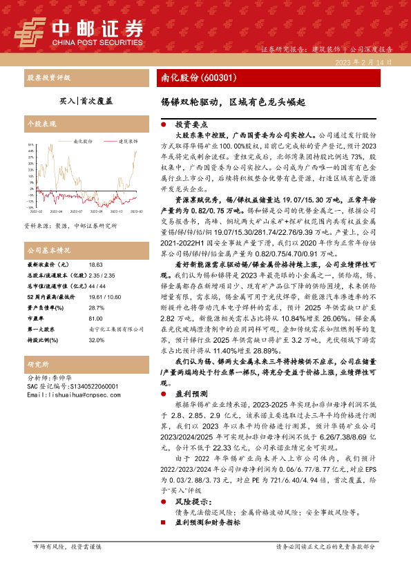 【中邮证券】【20230214】南化股份-600301.SH-锡锑双轮驱动,区域有色龙头崛起-19页