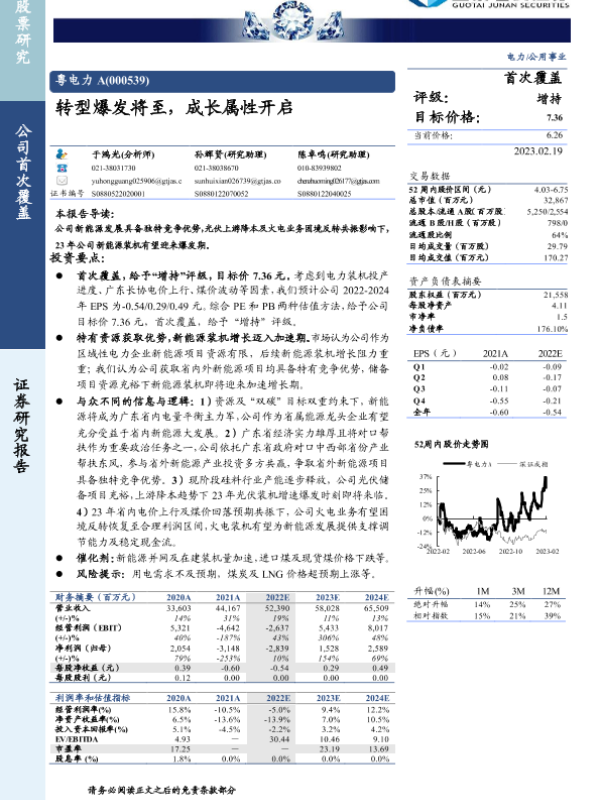 【国泰君安证券】【20230219】粤电力A(000539)转型爆发将至,成长属性开启-30页