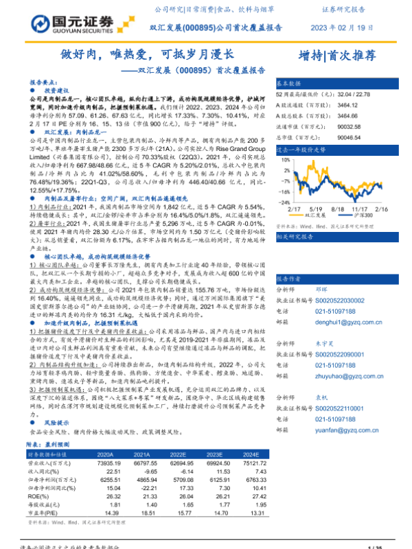 【国元证券】【20230219】双汇发展(000895)公司首次覆盖报告:做好肉,唯热爱,可抵岁月漫长-35页