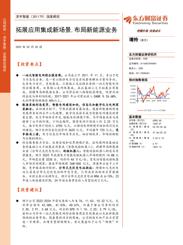 【东方财富证券】【20230220】泽宇智能(301179)深度研究:拓展应用集成新场景,布局新能源业务-28页