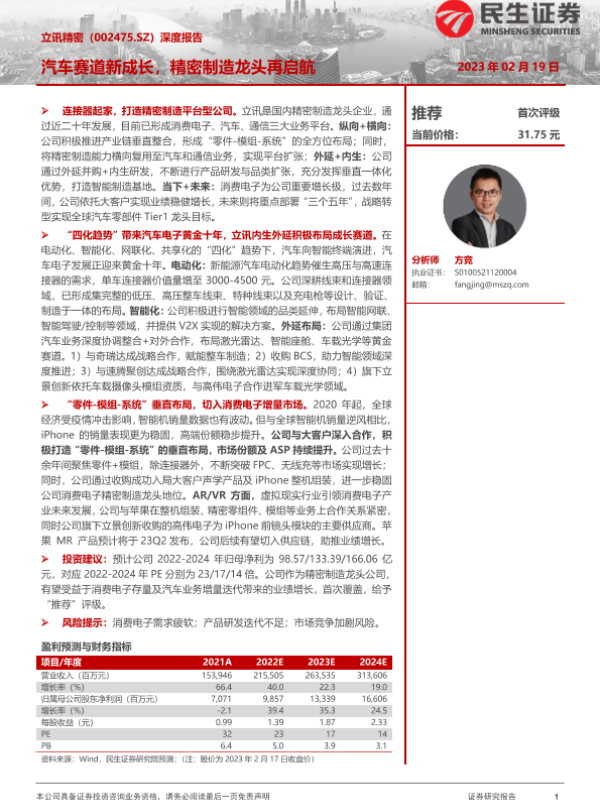 【民生证券】【20230219】20230219-民生证券-立讯精密-002475.SZ-深度报告:汽车赛道新成长,精密制造龙头再启航-50页