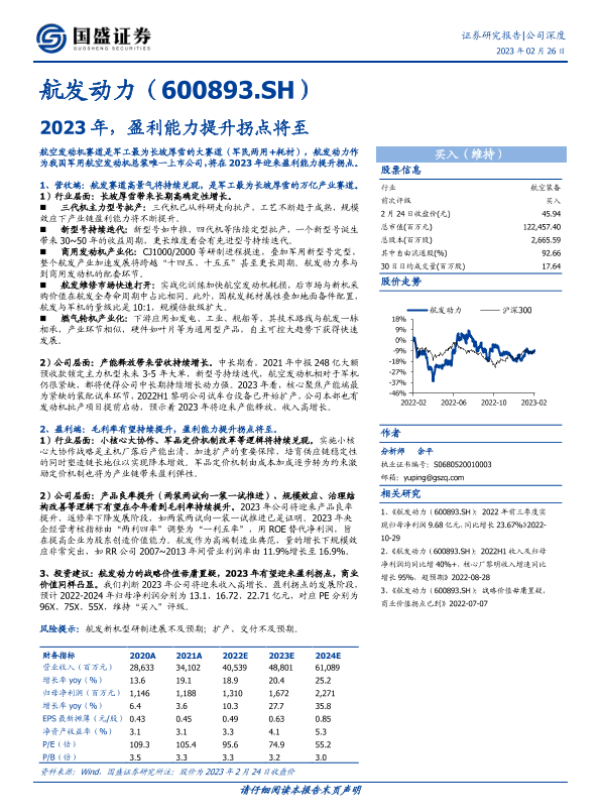 产能释放 军工 盈利能力 航发动力 航空发动机