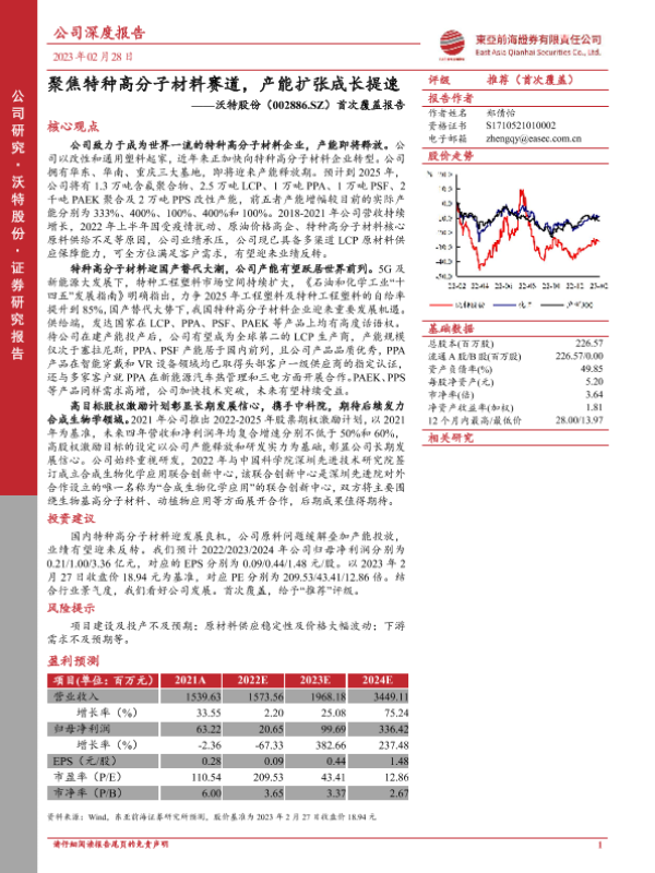 【东亚前海证券】【20230228】聚焦特种高分子材料赛道,产能扩张成长提速——沃特股份(002886.SZ)首次覆盖报告-28页