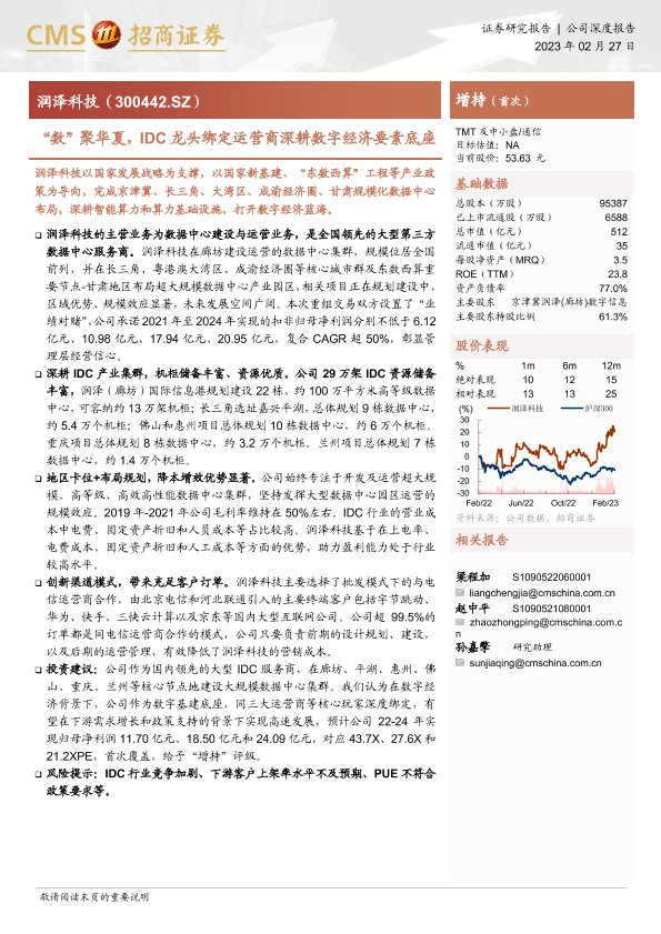 IDC 数字经济 数据中心 润泽科技 运营商合作