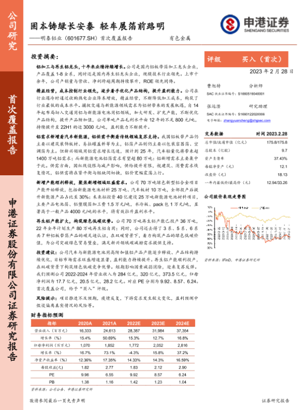 【申港证券】【20230228】20230228-申港证券-明泰铝业-601677.SH-首次覆盖报告:固本铸绿长安泰 轻车展箔前路明-27页