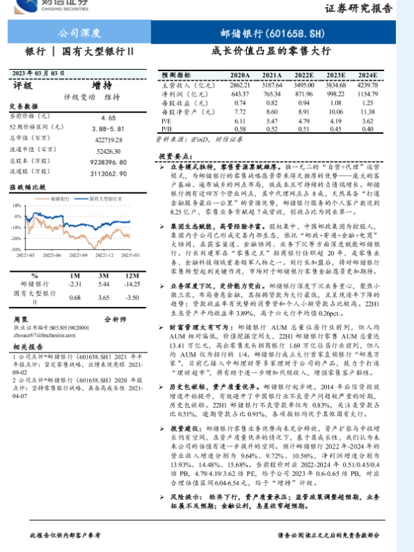 【财信证券】【20230303】20230303-财信证券-邮储银行-601658.SH-成长价值凸显的零售大行-20页