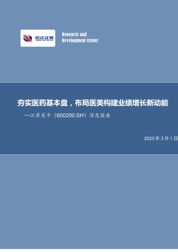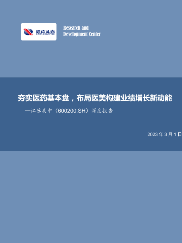 【信达证券】【20230301】20230301-信达证券-江苏吴中-600200.SH-深度报告:夯实医药基本盘,布局医美构建业绩增长新动能-37页