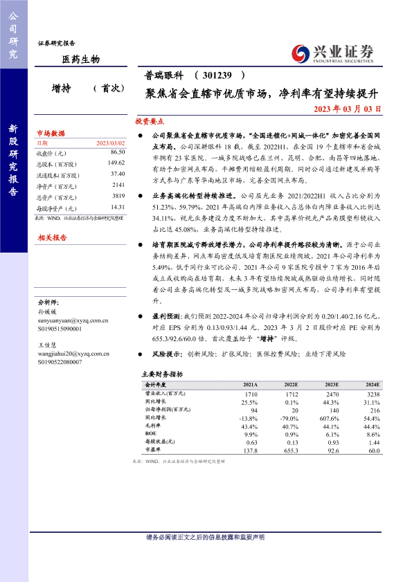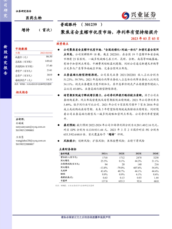 业务转型 市场布局 盈利能力 眼科医疗 连锁医院