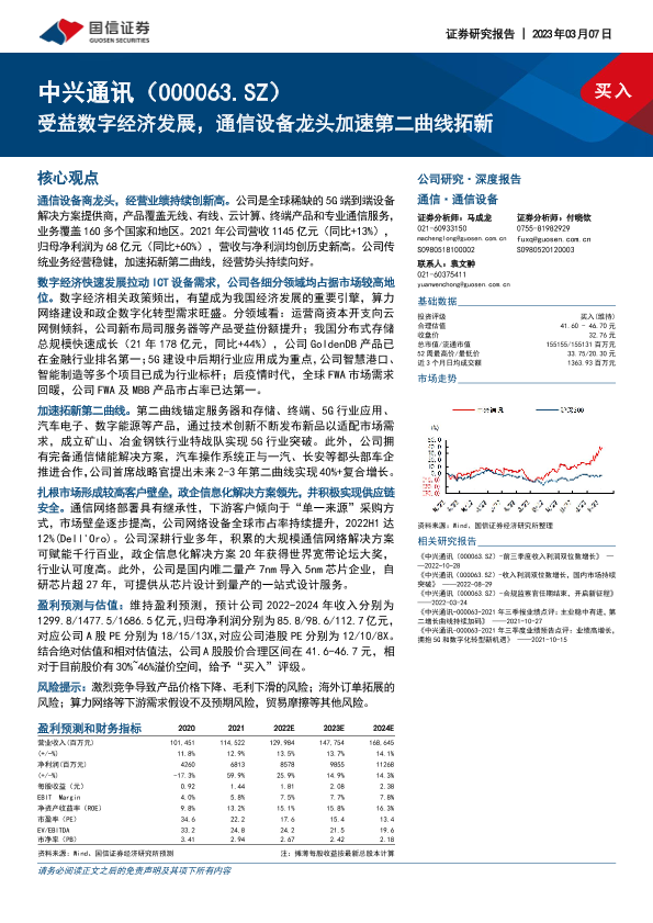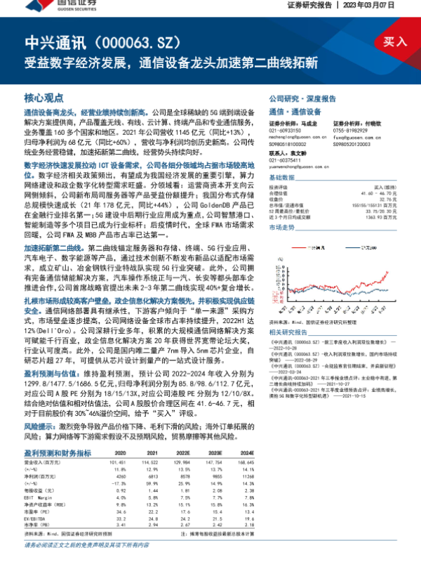 【国信证券】【20230307】受益数字经济发展,通信设备龙头加速第二曲线拓新-46页