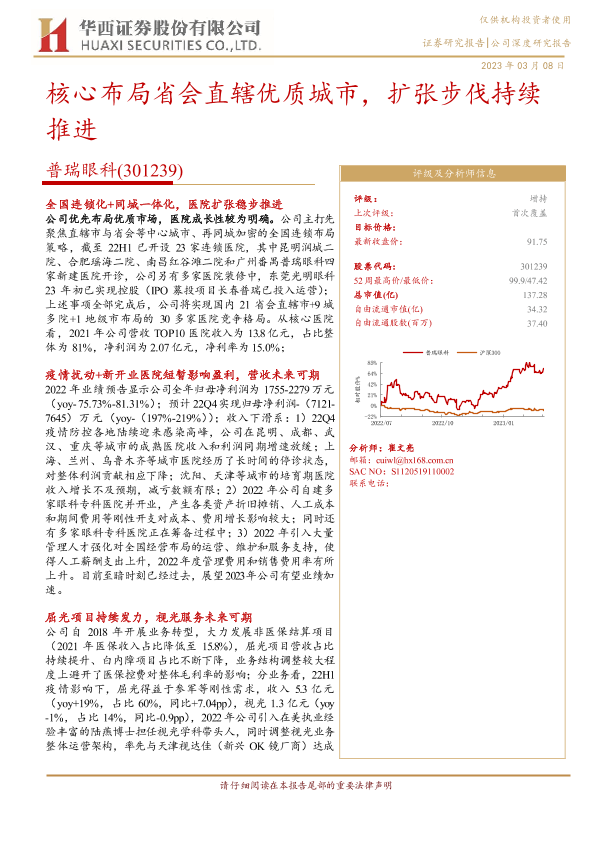 【华西证券】【20230308】普瑞眼科(301239):核心布局省会直辖优质城市,扩张步伐持续推进-31页
