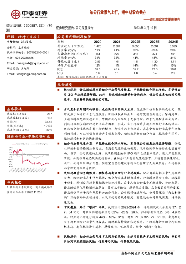 【中泰证券】【20230310】谱尼测试首次覆盖报告:细分行业景气上行,短中期看点共存-23页