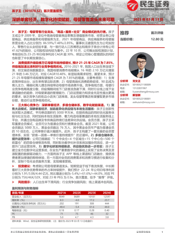 【民生证券】【20230313】孩子王-301078.SZ-首次覆盖报告:深耕单客经济,数字化持续赋能,母婴零售龙头未来可期-49页