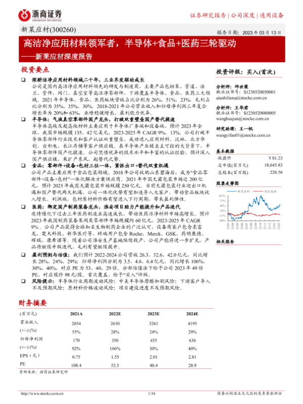 【浙商证券】【20230313】新莱应材深度报告:高洁净应用材料领军者,半导体+食品+医药三轮驱动-34页