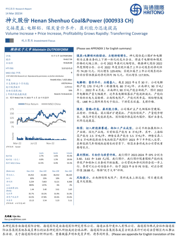【海通国际】【20230314】交接覆盖:电解铝、煤炭量价齐升,盈利能力迅速提高-23页