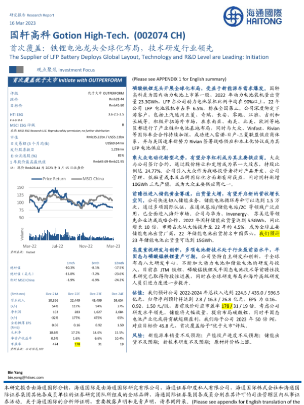 【海通国际】【20230316】国轩高科-002074.SZ-首次覆盖:铁锂电池龙头全球化布局,技术研发行业领先-23页
