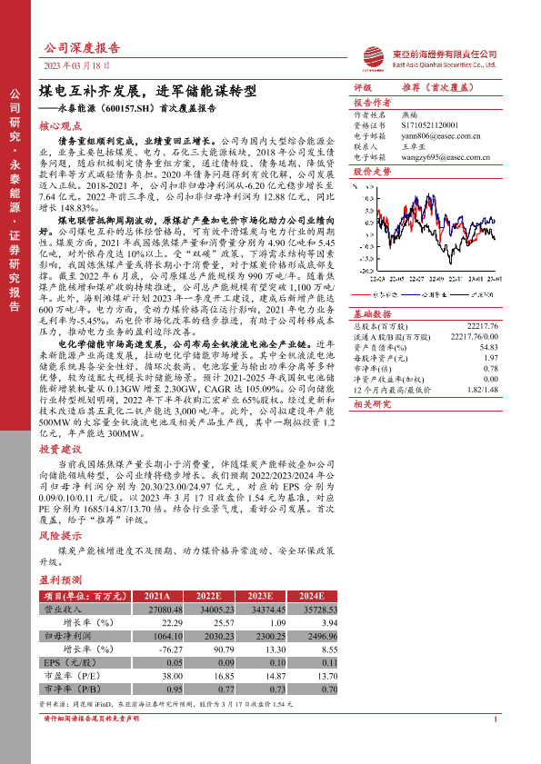 【东亚前海证券】【20230318】20230318-东亚前海证券-永泰能源-600157.SH-首次覆盖报告:煤电互补齐发展,进军储能谋转型-31页