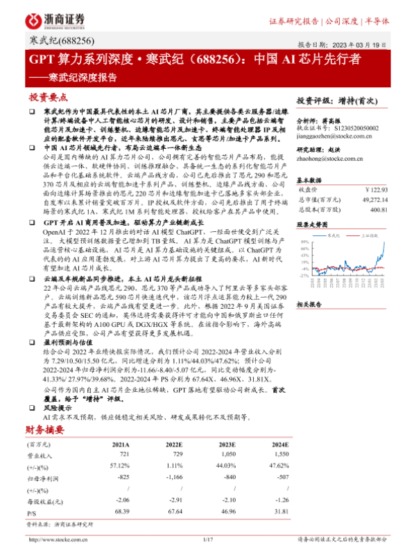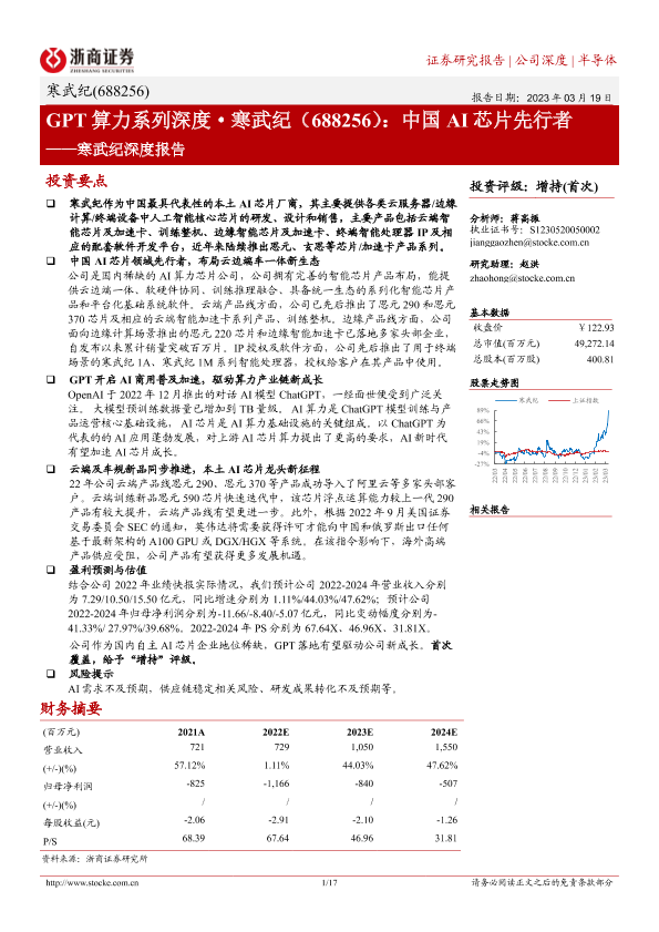 【浙商证券】【20230319】20230319-浙商证券-寒武纪-688256.SH-寒武纪深度报告:GPT算力系列深度·寒武纪(688256):中国AI芯片先行者-17页