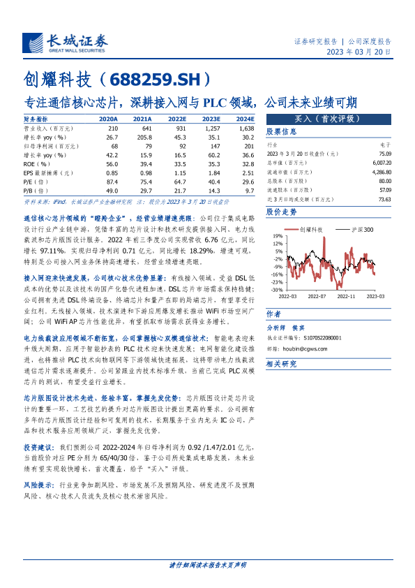 【长城证券】【20230320】创耀科技-专注通信核心芯片,深耕接入网与PLC领域,公司未来业绩可期-26页