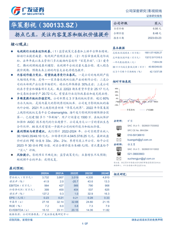 【广发证券】【20230323】华策影视(300133.SZ)拐点已至,关注内容复苏和版权价值提升-27页