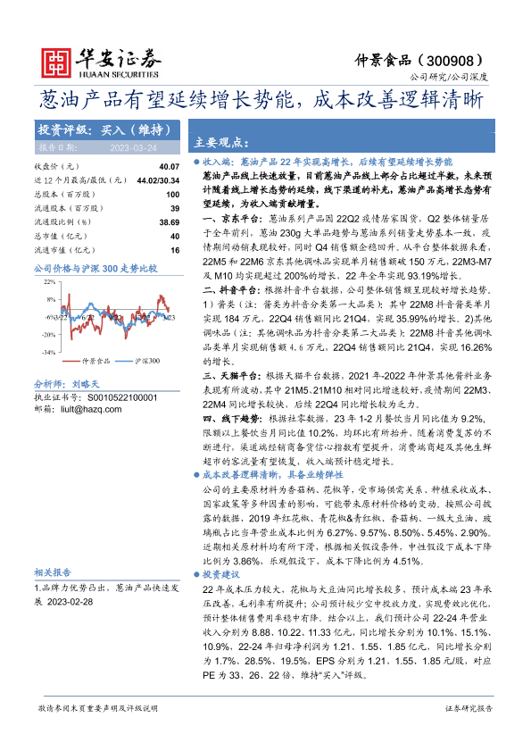 【华安证券】【20230324】葱油产品有望延续增长势能,成本改善逻辑清晰-13页