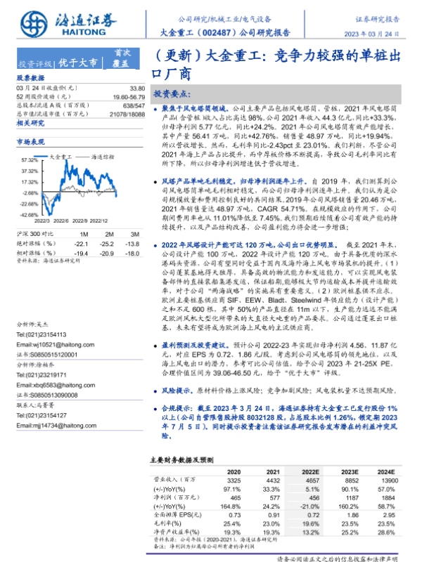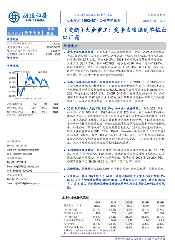 【海通证券】【20230324】(更新)大金重工:竞争力较强的单桩出口厂商-21页