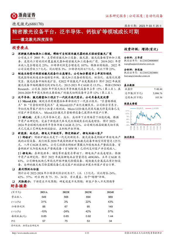 【浙商证券】【20230325】德龙激光深度报告:精密激光设备平台,泛半导体、钙钛矿等领域成长可期-33页