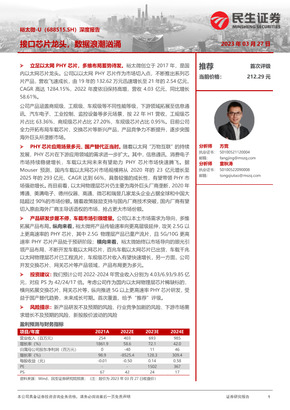 【民生证券】【20230327】20230327-民生证券-裕太微-688515.SH-深度报告:接口芯片龙头,数据浪潮汹涌-33页