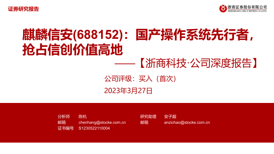 【浙商证券】【20230327】麒麟信安(688152):国产操作系统先行者,抢占信创价值高地-32页