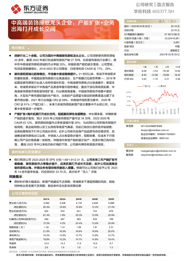 【东方证券】【20230329】华旺科技-605377.SH-中高端装饰原纸龙头企业,产能扩张+业务出海打开成长空间-25页