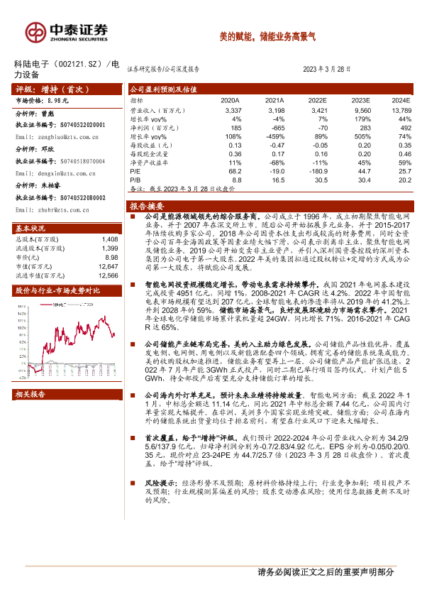 【中泰证券】【20230328】20230328-中泰证券-科陆电子-002121.SZ-美的赋能,储能业务高景气-30页