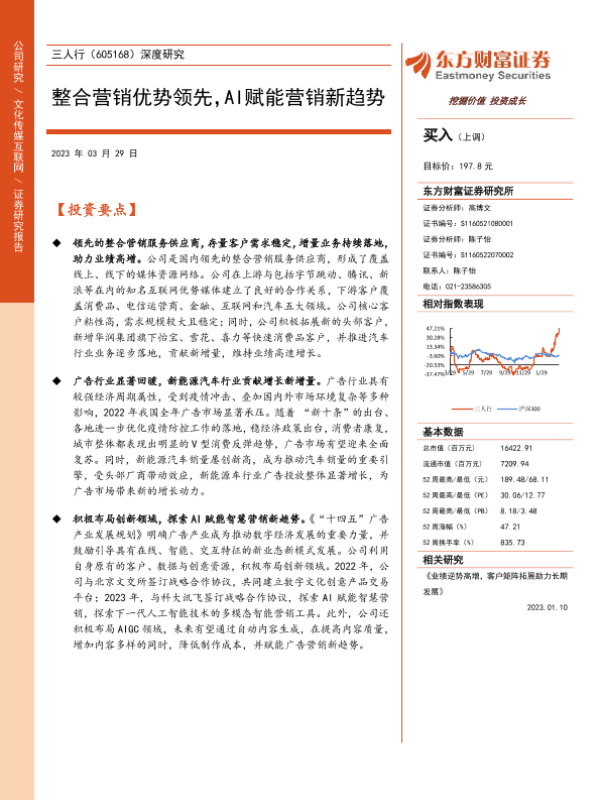 【东方财富证券】【20230329】三人行-605168.SH-深度研究:整合营销优势领先,AI赋能营销新趋势-30页