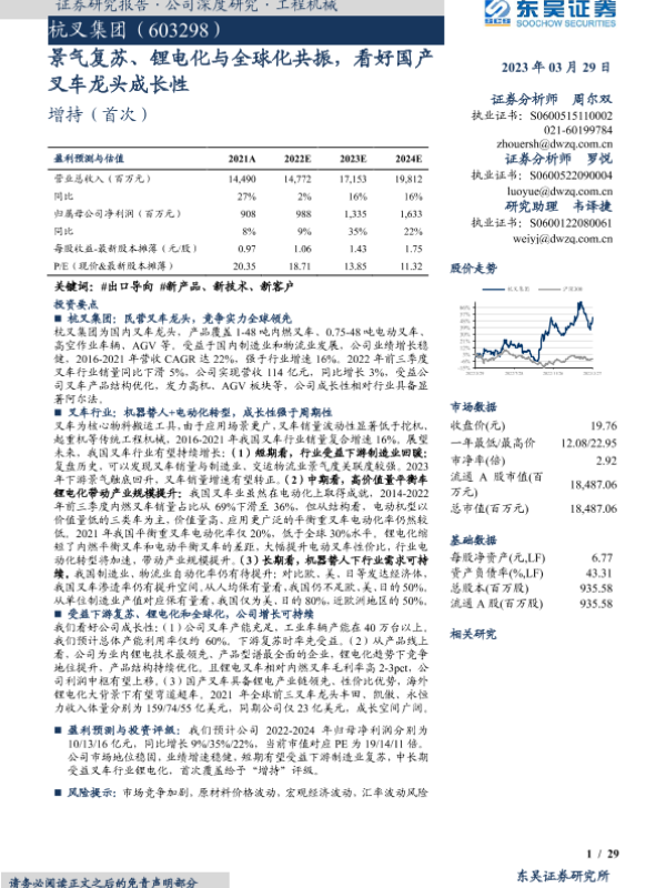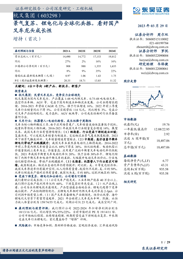 【东吴证券】【20230329】景气复苏、锂电化与全球化共振,看好国产叉车龙头成长性-29页
