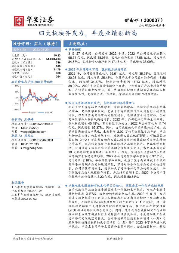 四大板块 年度业绩 新宙邦 有机氟化学品 锂电池电解液