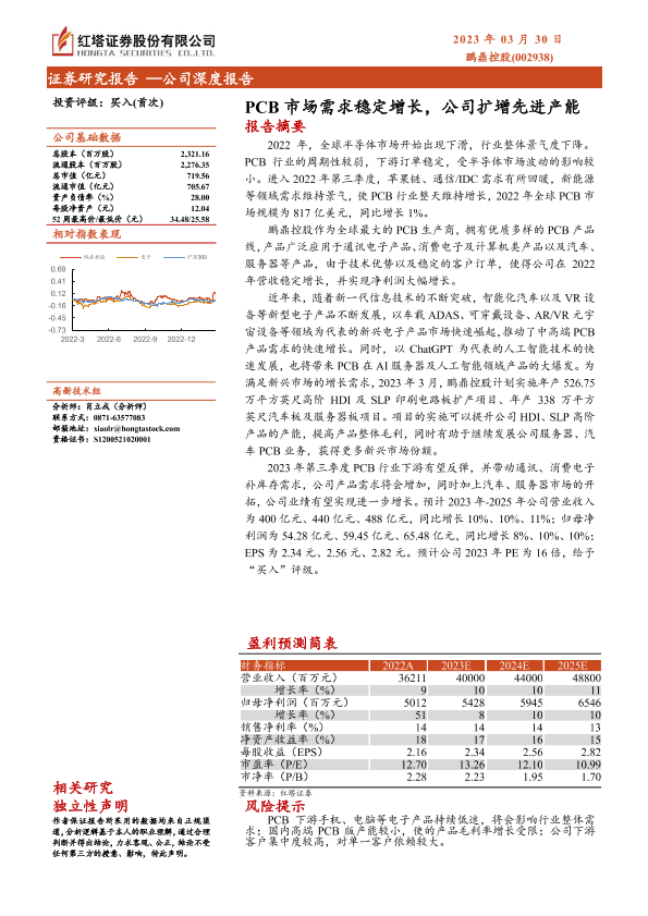 【红塔证券】【20230330】PCB市场需求稳定增长,公司扩增先进产能-34页