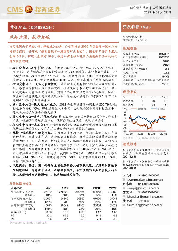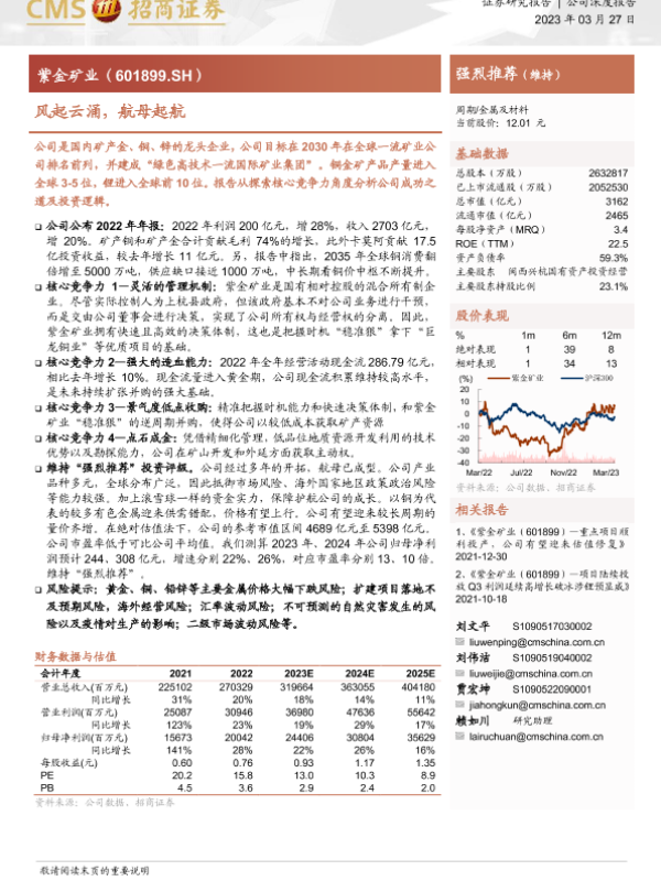 战略规划 投资分析 紫金矿业 财务数据 金属矿产