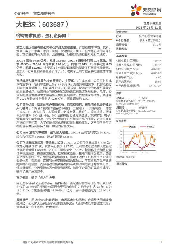 【天风证券】【20230331】终端需求复苏,盈利企稳向上-22页