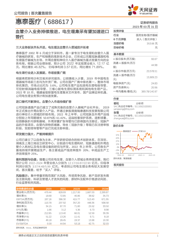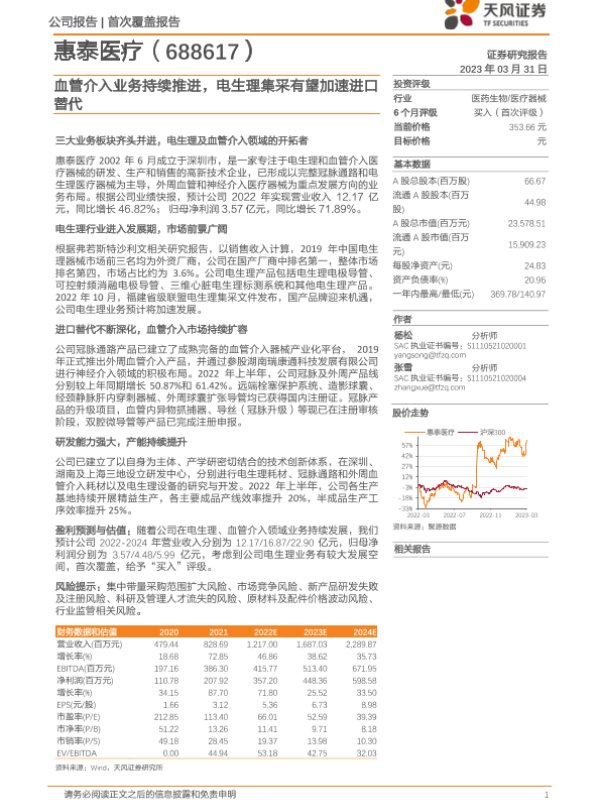 【天风证券】【20230331】惠泰医疗-688617.SH-血管介入业务持续推进,电生理集采有望加速进口替代-34页
